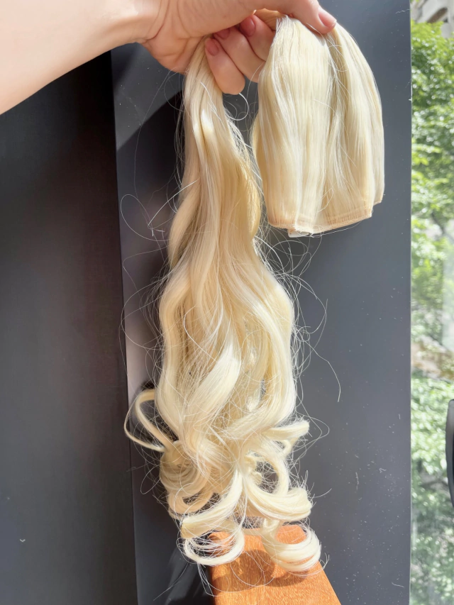 Mega Hair Loiro Platinado Claro Ondulado em fibra orgânica biovegetal. ( Cor muito fiel as fotos)